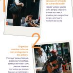 Entre as propostas está visitar locais com pessoas em situação de vulnerabilidade, como abrigos, ocupações urbanas ou rurais e presídios. Esses encontros favorecem o diálogo, o escuta e o fortalecimento de vínculos humanos e espirituais. Outra sugestão é organizar eventos culturais com protagonismo dos pobres, como saraus, festivais, contações de histórias e exposições fotográficas que valorizem talentos e experiências de vida.