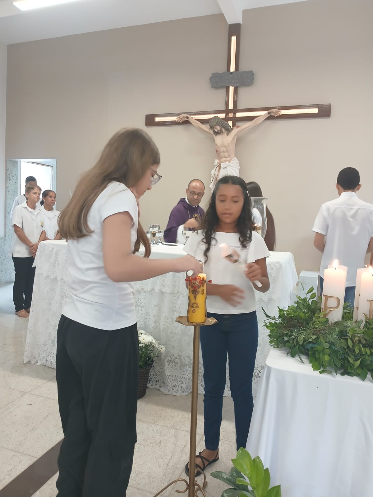 Nossos catequizandos das comunidades da MATRIZ e de Nossa Senhora do Perpétuo Socorro deram um passo fundamental em sua jornada de fé ao receberem, pela primeira vez, o Corpo de Cristo.
